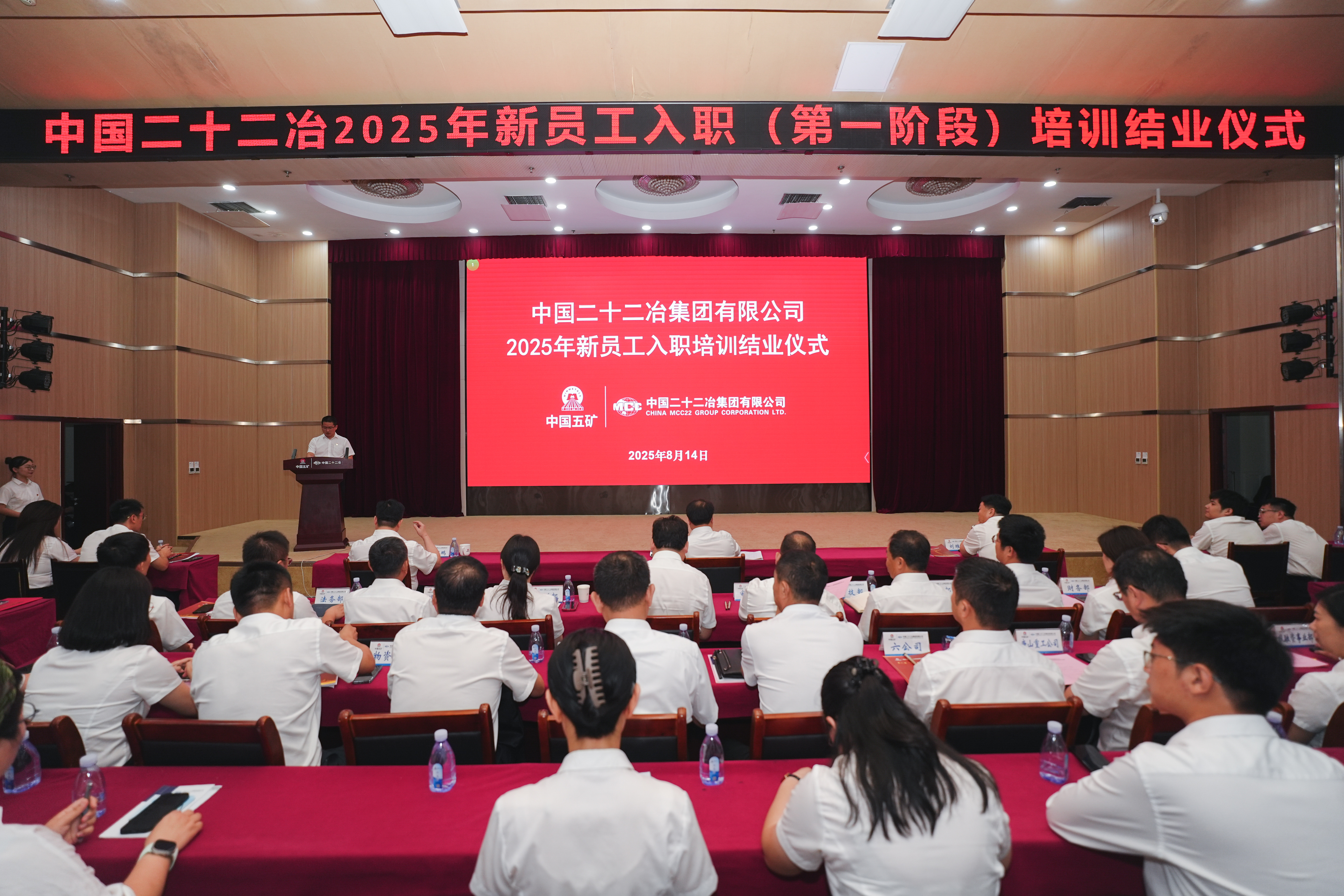 8月14日,中國(guó)二十二冶召開2025年新員工入職培訓(xùn)(第一階段)結(jié)業(yè)儀式。中國(guó)二十二冶黨委書記、董事長(zhǎng)袁斯浪,黨委副書記、職工董事張育鵬,工會(huì)主席、專項(xiàng)工作督導(dǎo)辦公室主任劉維棟出席。黨委組織部(人力資源部)副部長(zhǎng)(主持工作)郭穎川主持結(jié)業(yè)儀式。